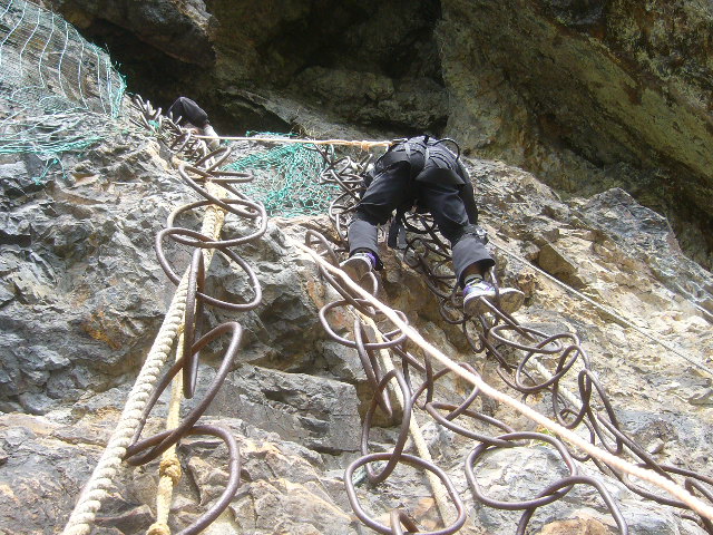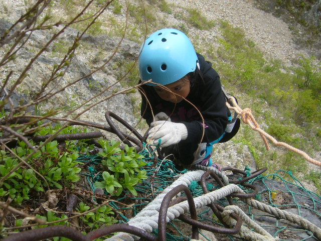 岩壁へのトライ