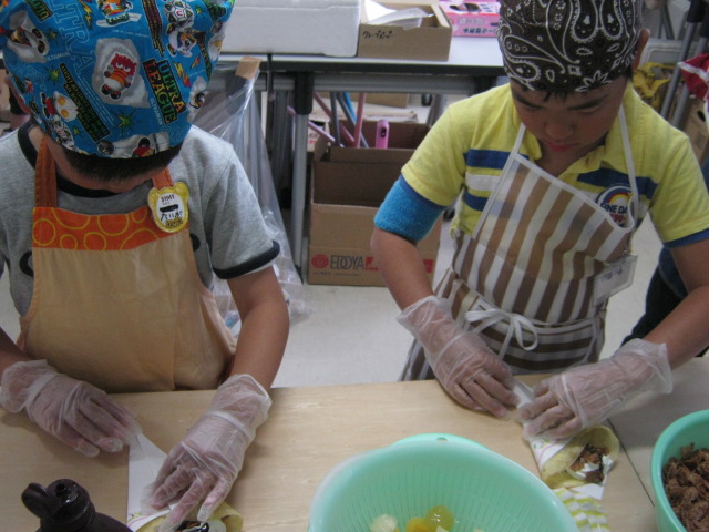 クレープを 包んで 仕上げます。
