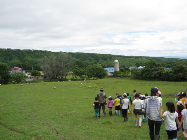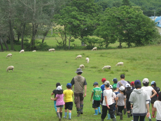 気持ちよく 羊の牧場で 体験学習をスタートだぁ