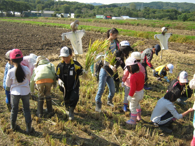 稲刈り みんなで  頑張ると