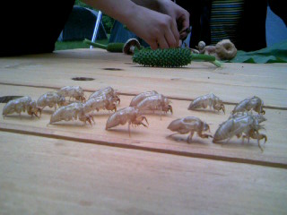小学男子! セミの抜け殻(ガヤ)の行列・・・
