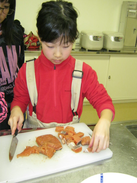 サケを 調理します