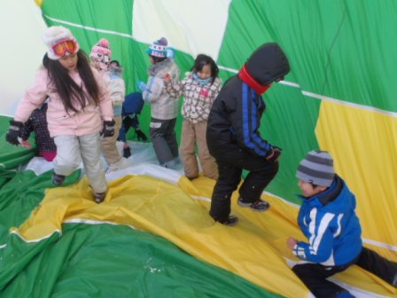 みんなで 気球をたたみました!