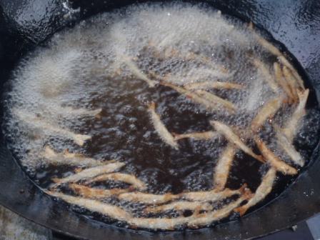 ワカサギを 揚げる
