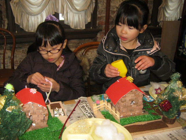 本物のレンガで造られた建物の中で、工作しながら、